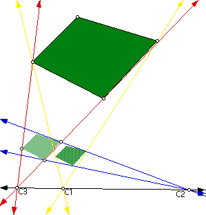 The second step is to show that the center of composition (C3) lies on the line through the other two centers (C1 and C2). In problem number 4 we picked four points on the plane and dilated them about C1 and C2 which resulted in a third dilation with center C3. We could have taken any point on the plane and dilated it to see its image, we just happen to pick four points and study their particular images. Thus we can restrict our study only one point on the plane and its image.